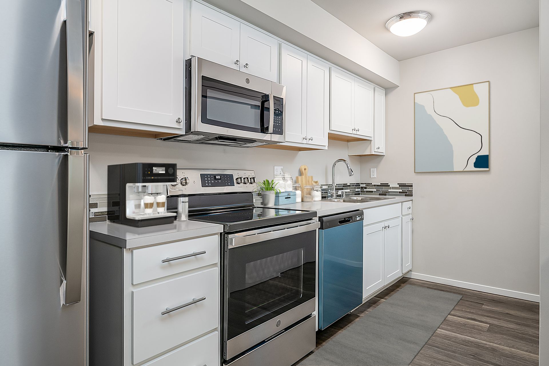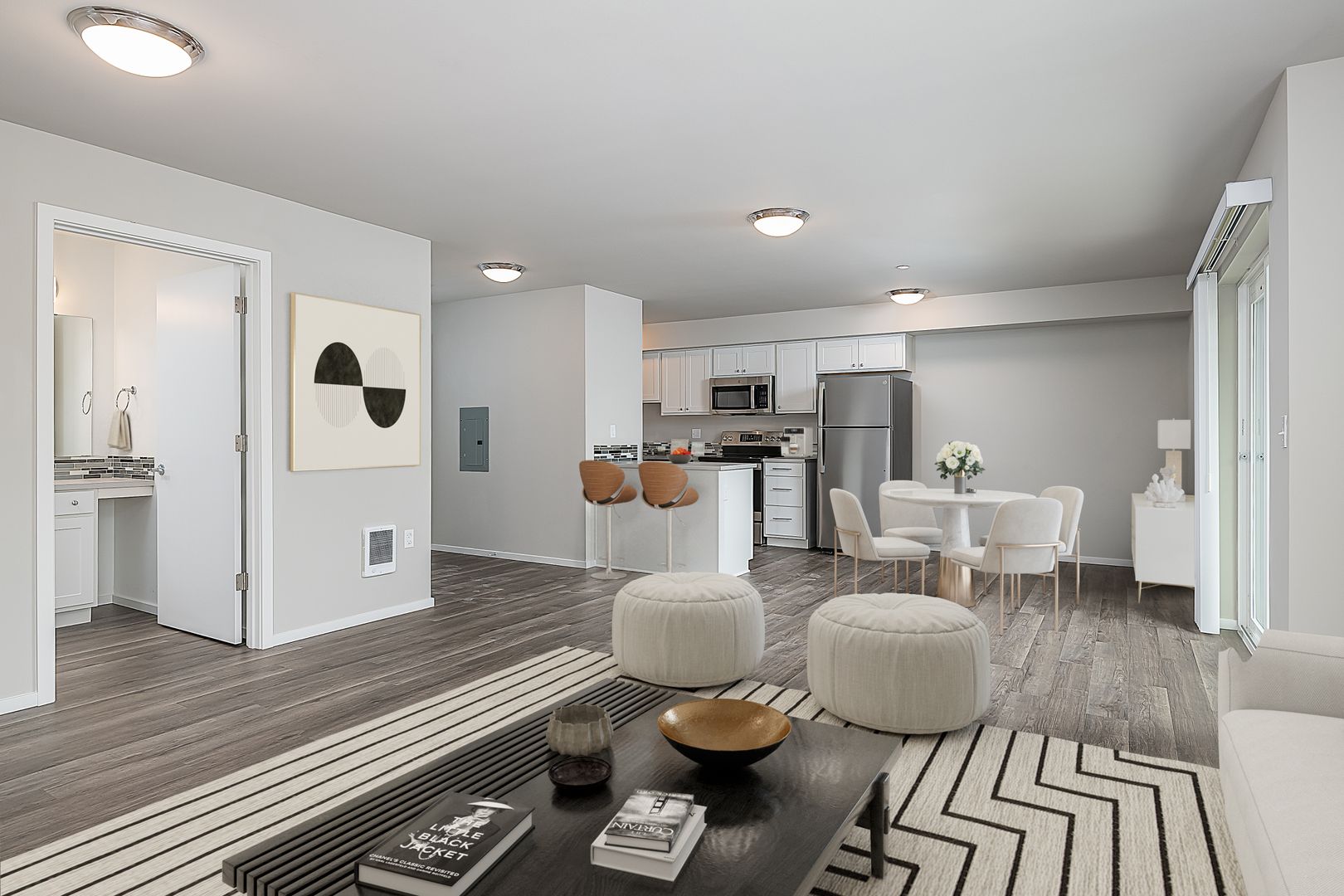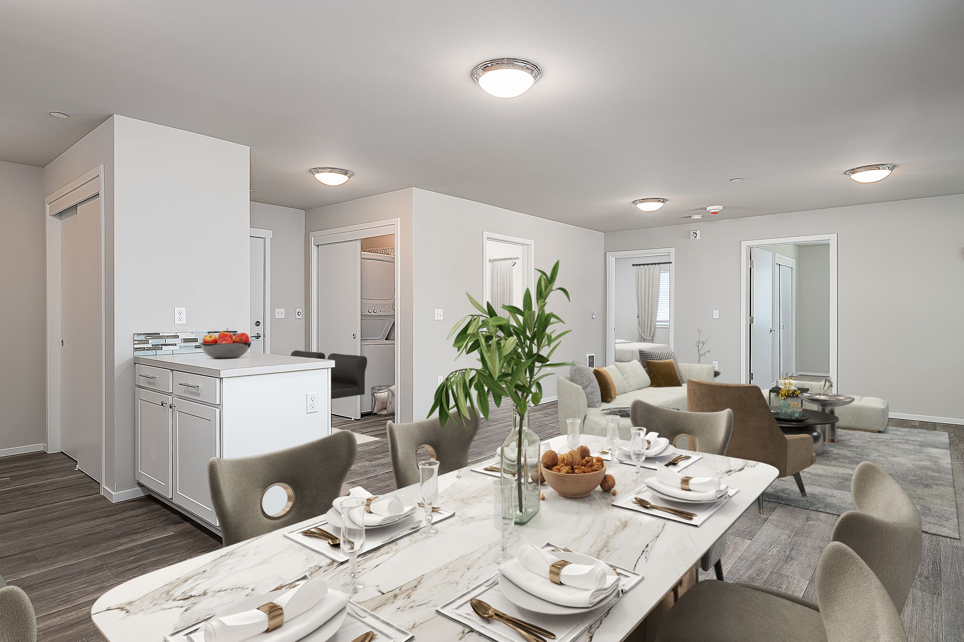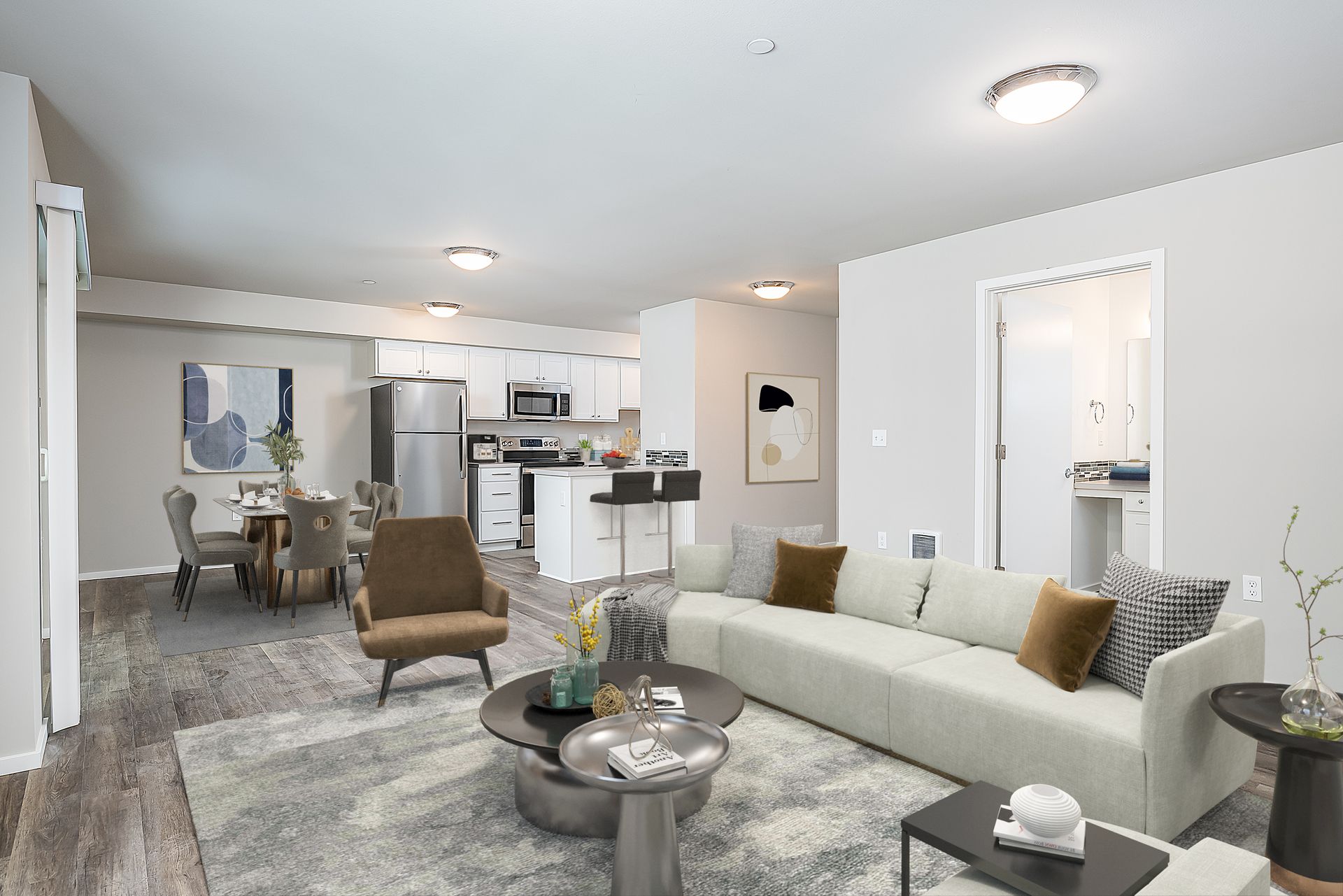 We've redefined what luxury means to you in our exceptional one and two bedroom units that offer up to 950 square feet of living space. Come home to lofty ceilings, beautiful hardwood throughout with plush carpet in the bedrooms, LED lighting, washer/dryers in every unit, oversized balconies, and a variety of other modern finishes.