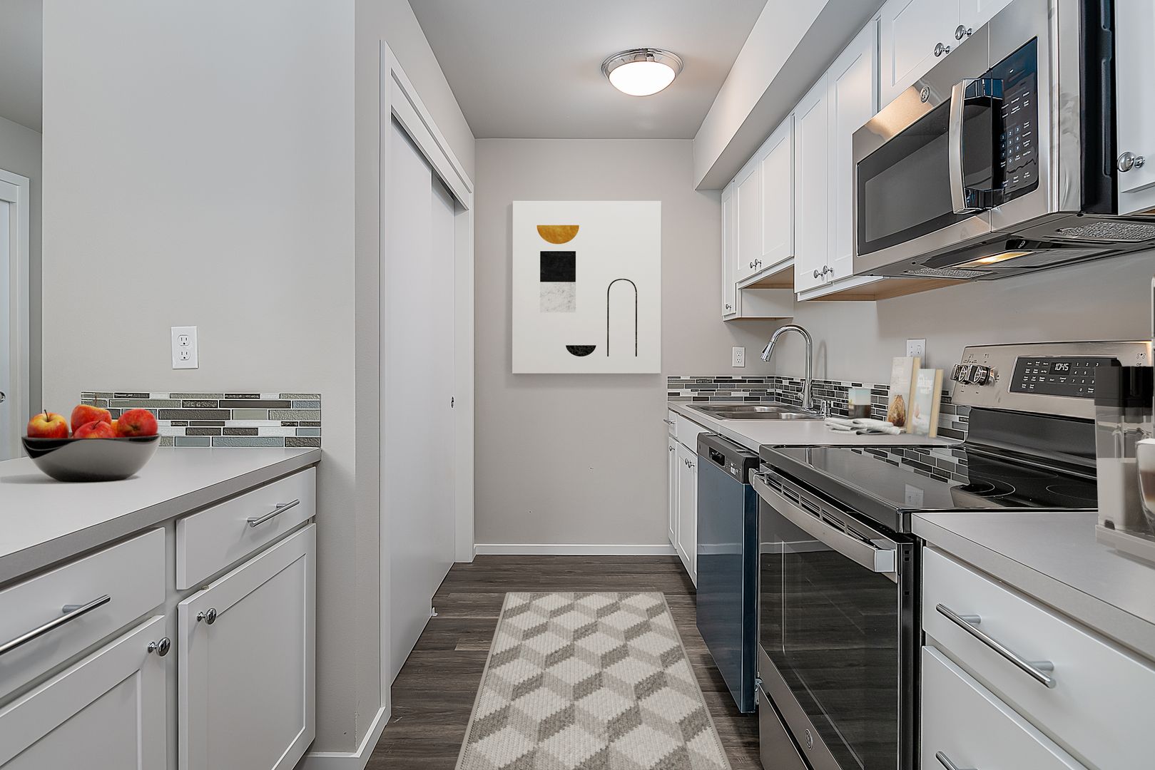 Our gourmet kitchen will have you cooking like a pro in no time! Featuring stainless steel appliances, built in microwaves, designer tile backsplashes, pantries in select kitchens, sleek and stylish flat-panel cabinetry with lots of storage!